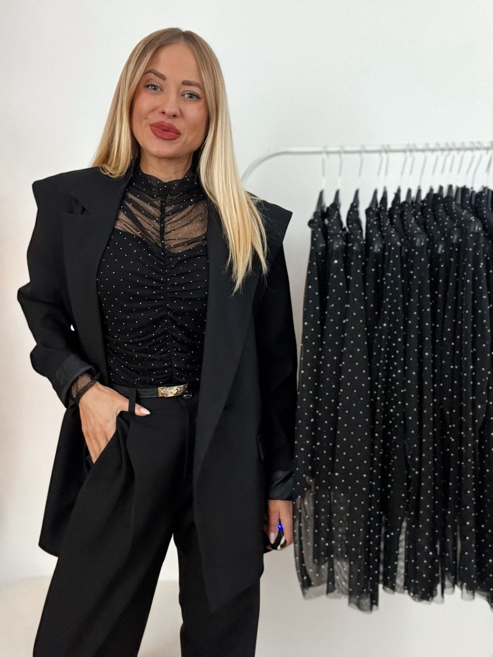 INES - BLUZKA CZARNA Z KRYSZTAŁKAMI