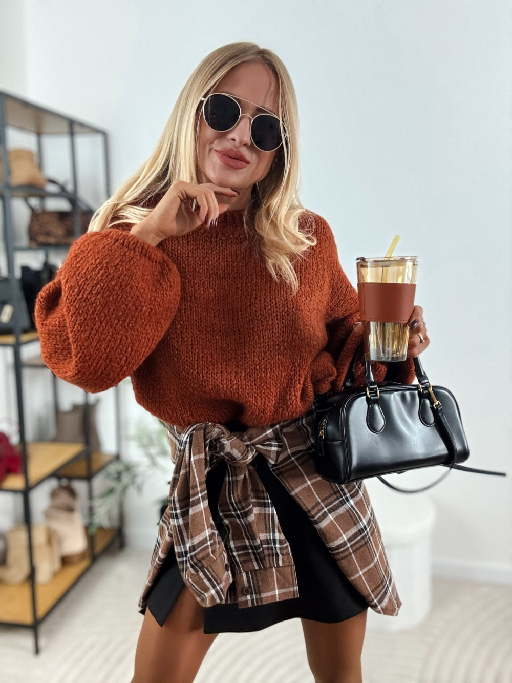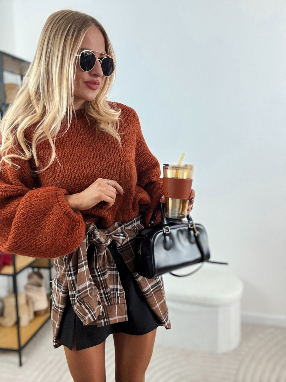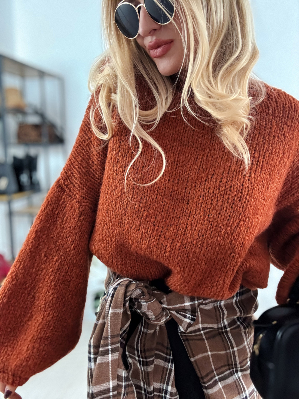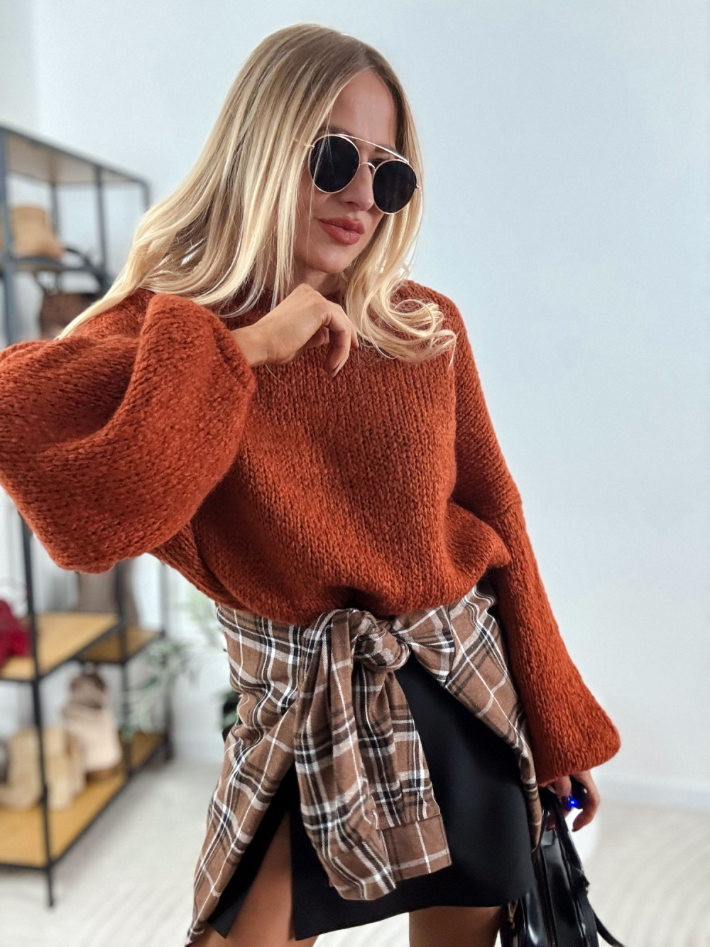 ROYAL- SWETER Z BUFIASTYMI RĘKAWAMI RUDY