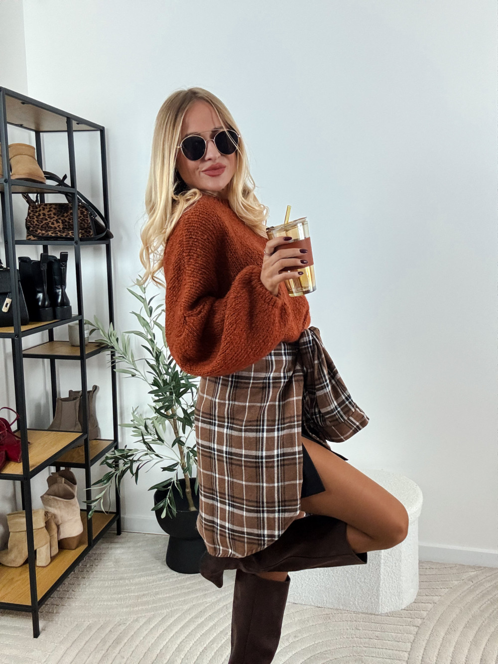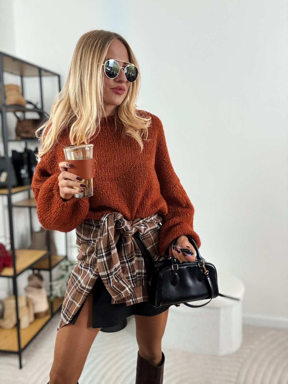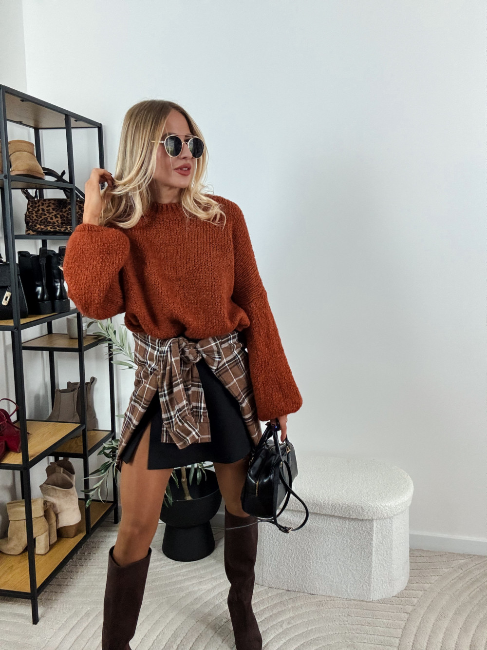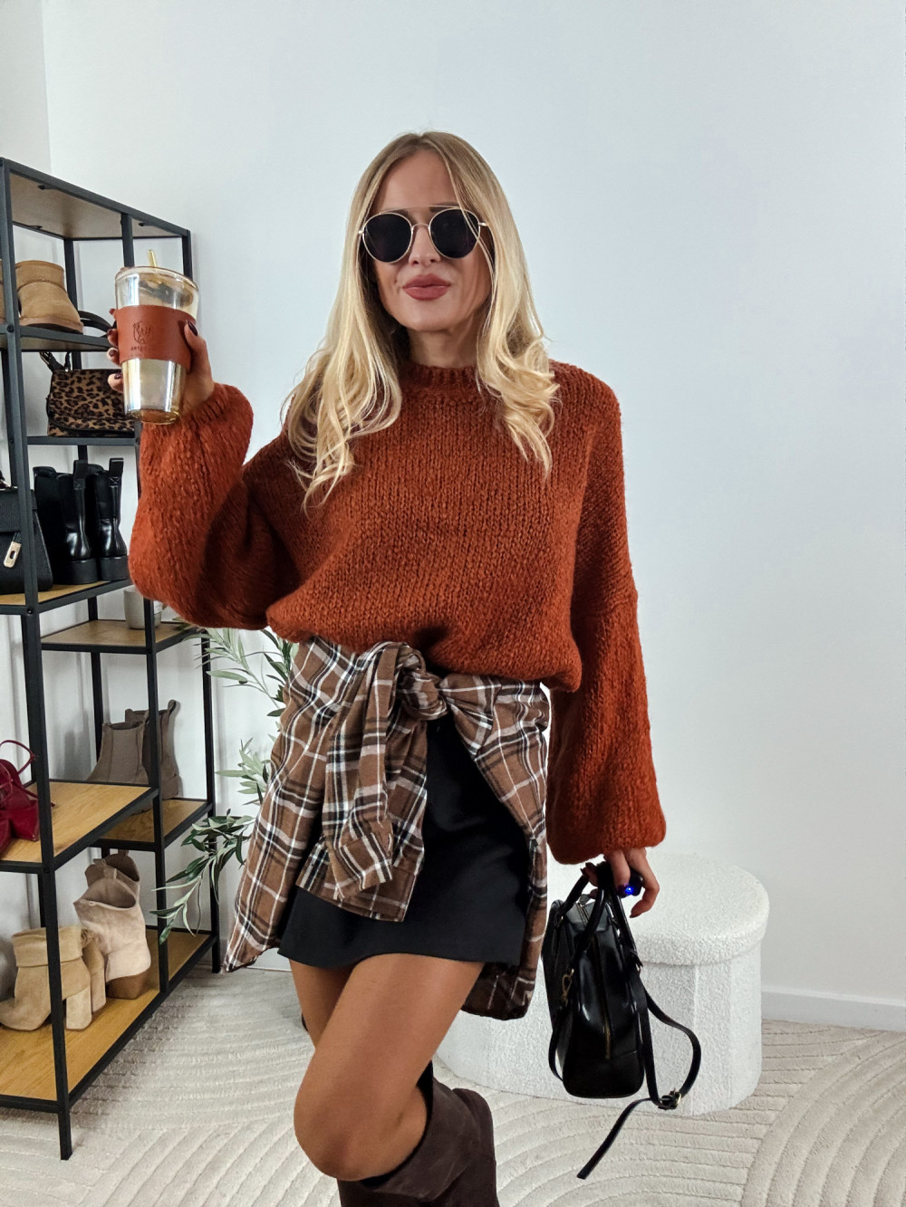 ROYAL- SWETER Z BUFIASTYMI RĘKAWAMI RUDY