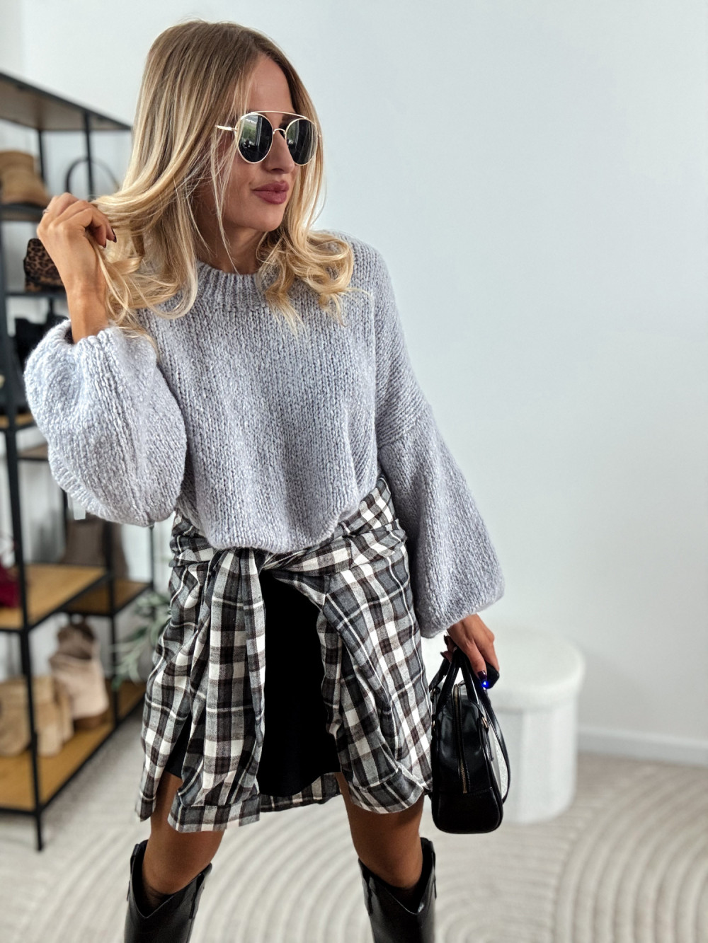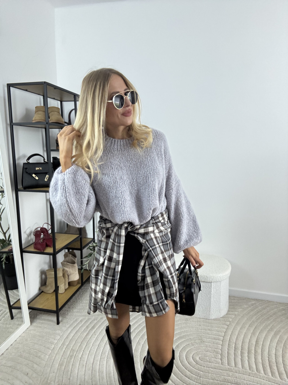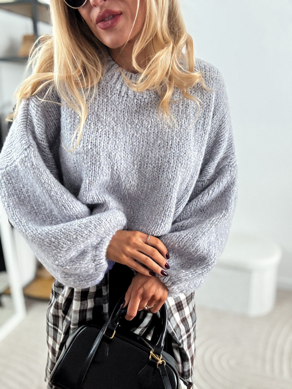 ROYAL -SWETER Z BUFIASTYMI RĘKAWAMI SZARY