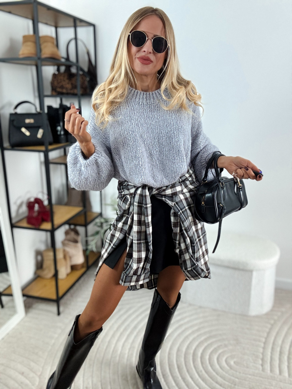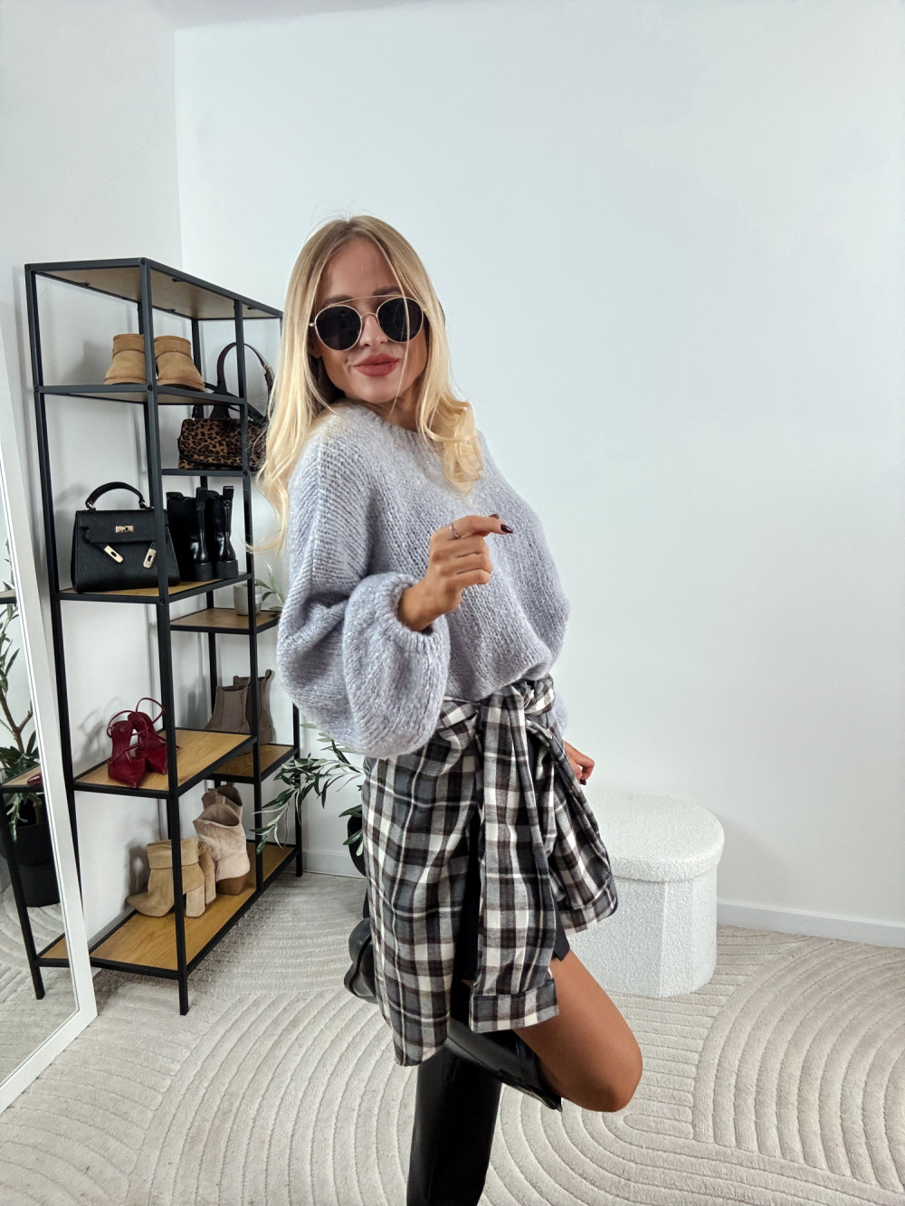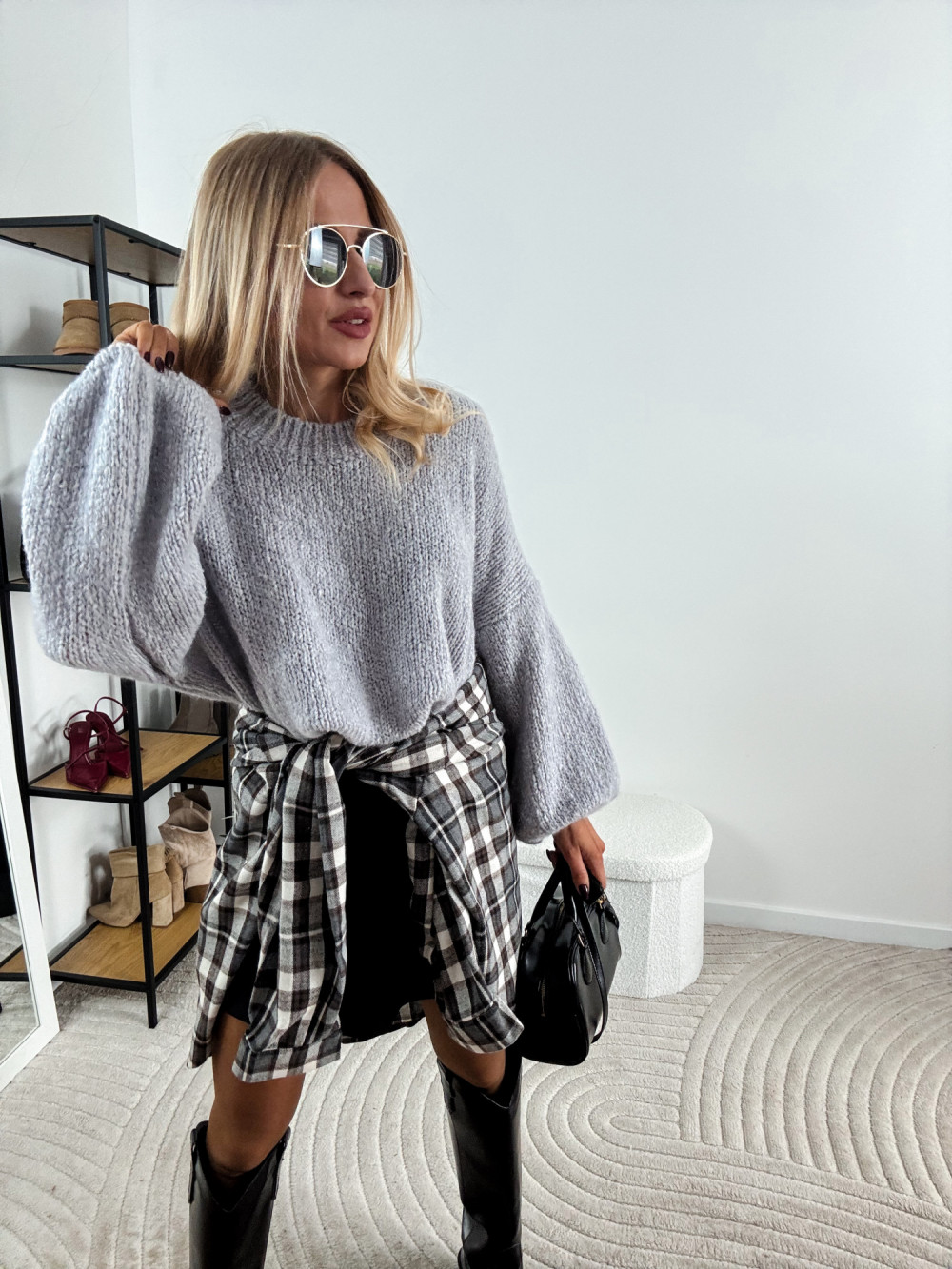 ROYAL -SWETER Z BUFIASTYMI RĘKAWAMI SZARY