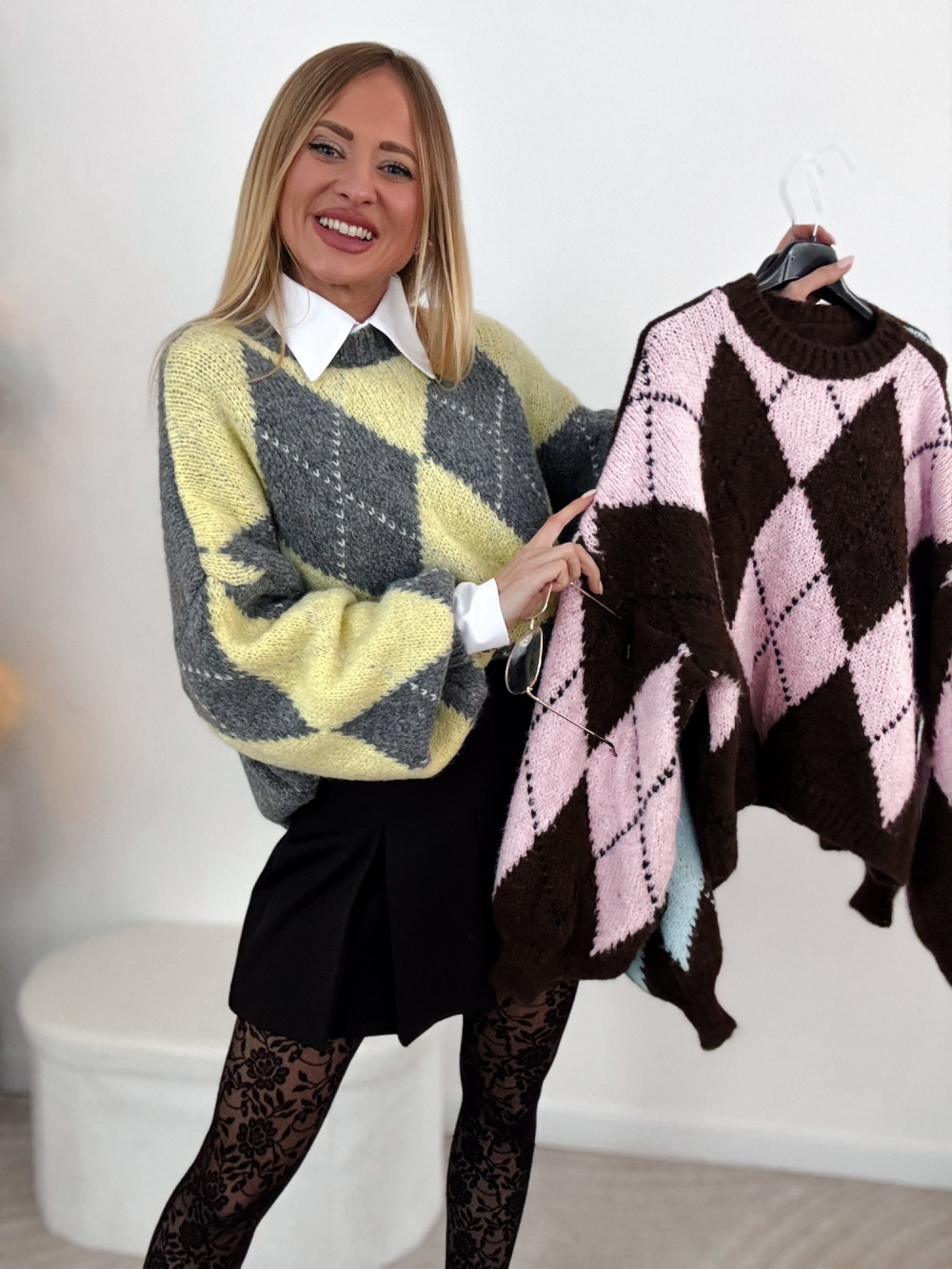ROSY- SWETER W ROMBY ŻÓŁTY