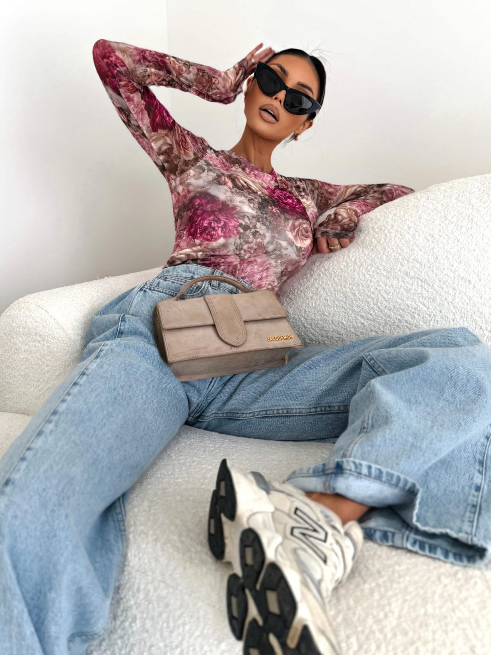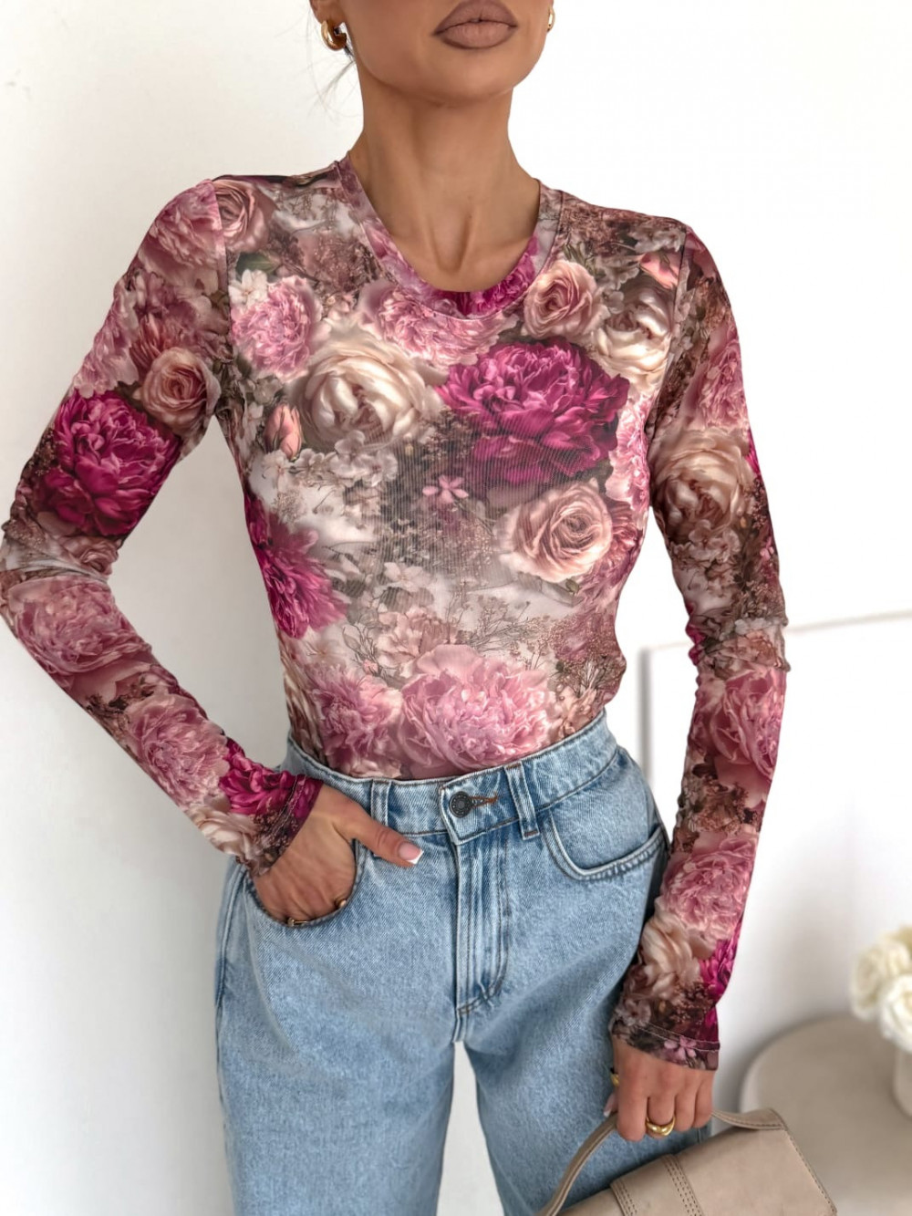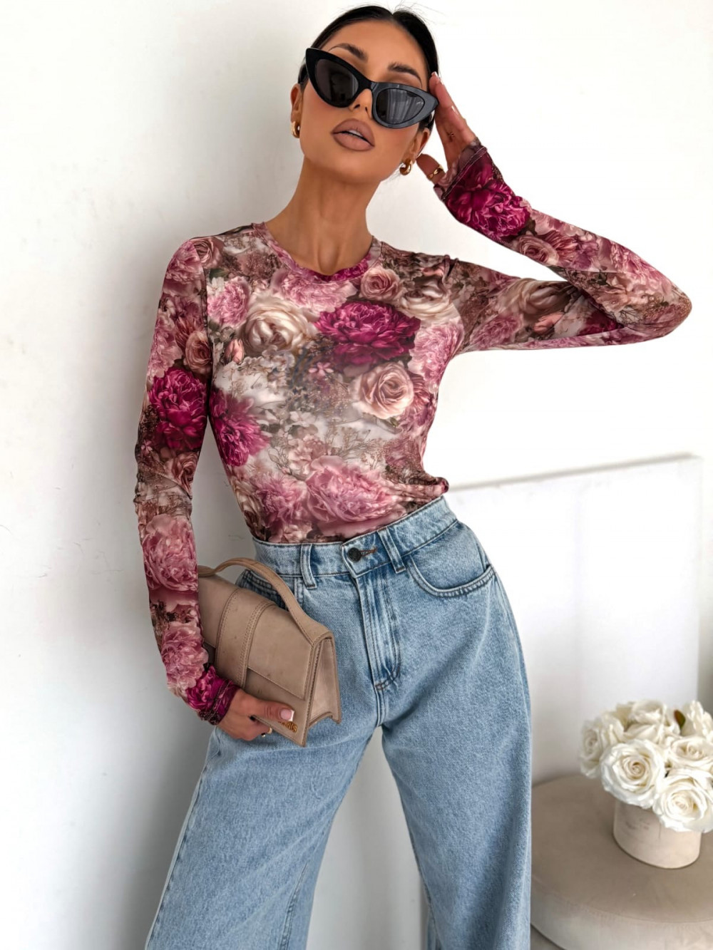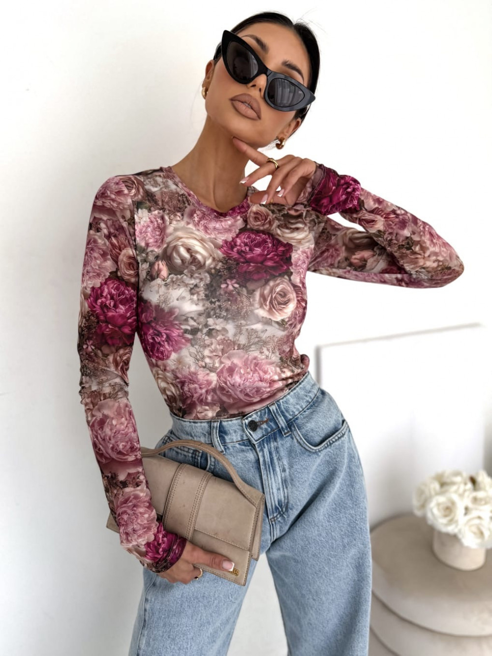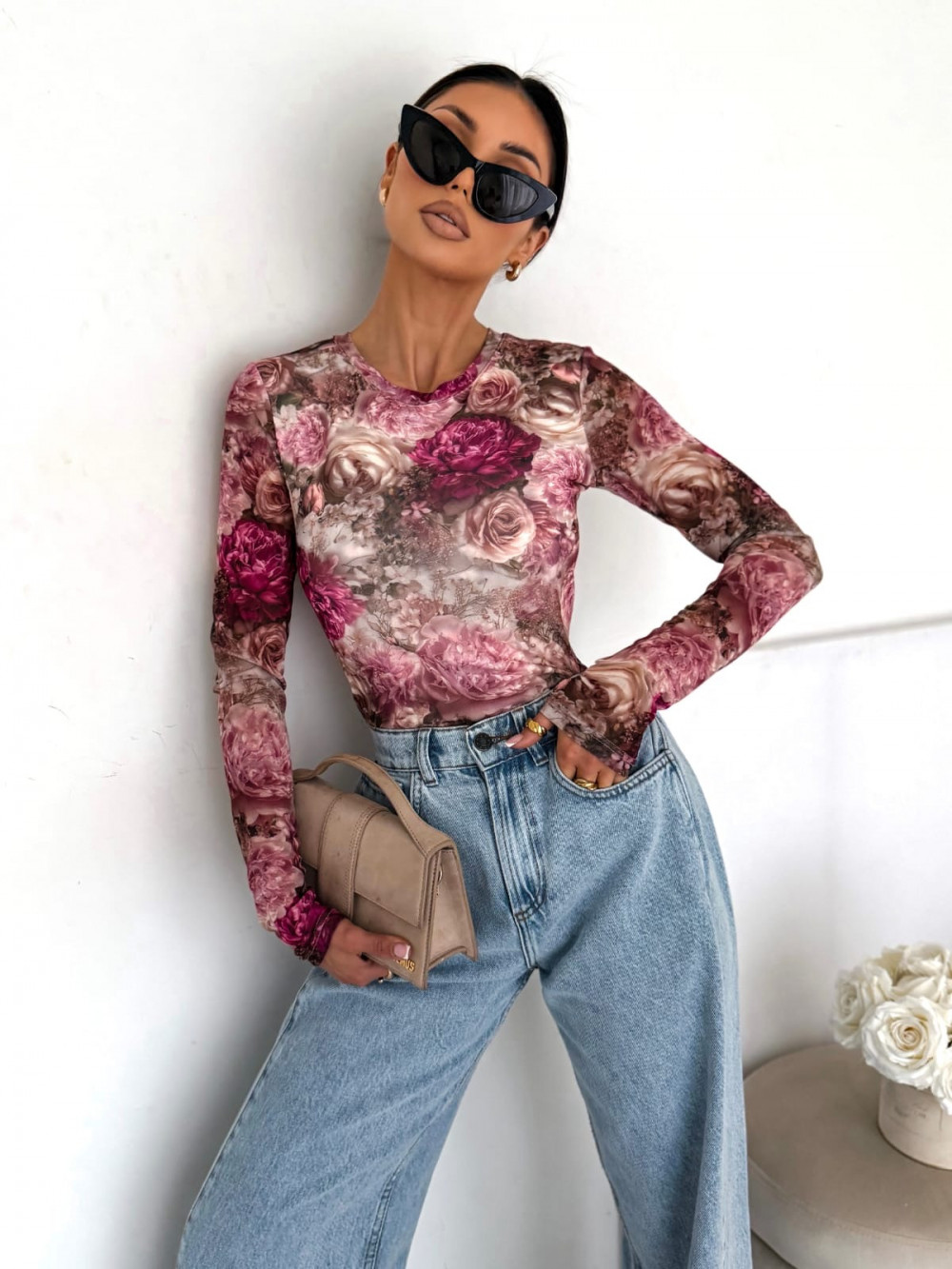 BLUZKA SELFLOVE BEŻOWO RÓŻOWE KWIATY