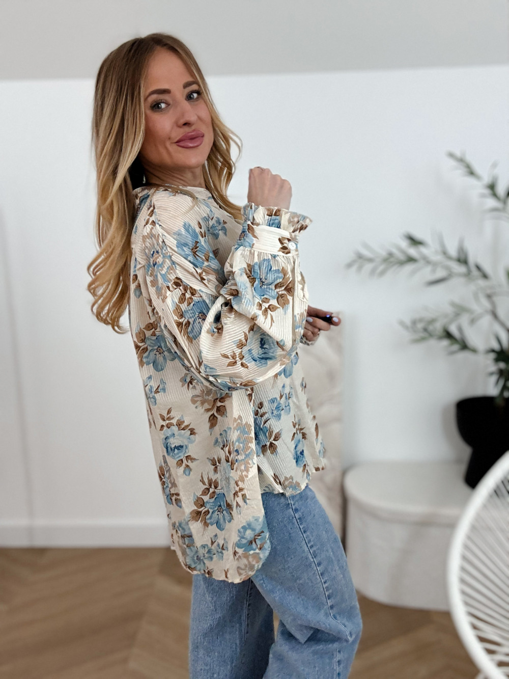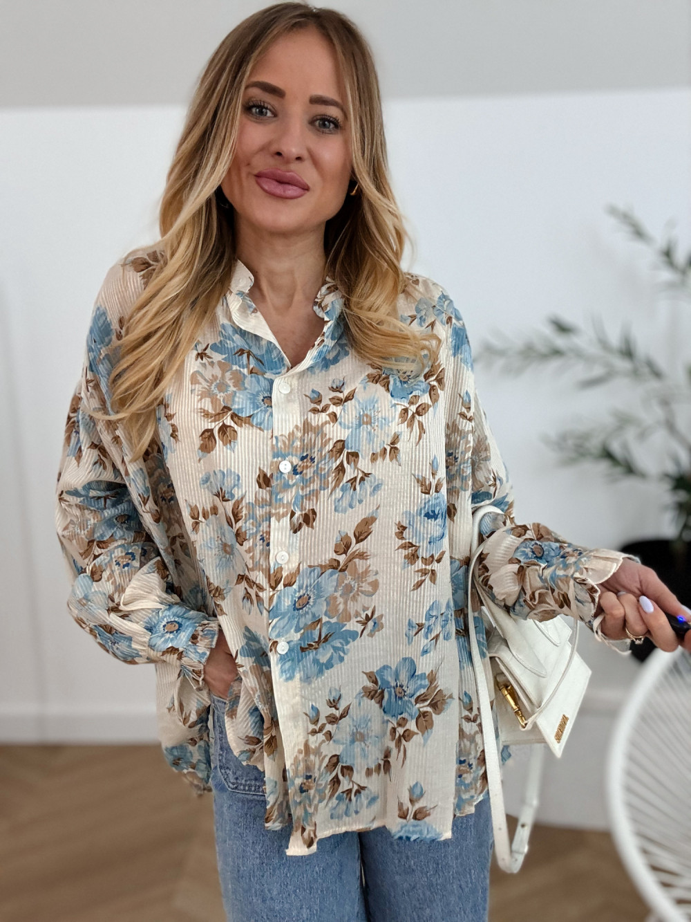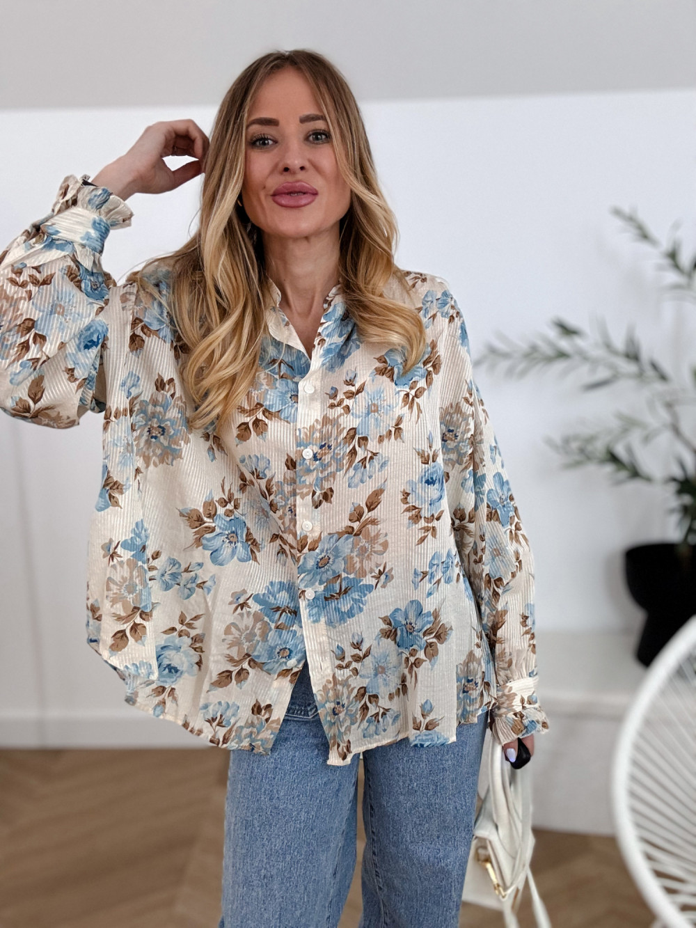 SOFIJA - KOSZULA KREMOWA W NIEBIESKIE KWIATY