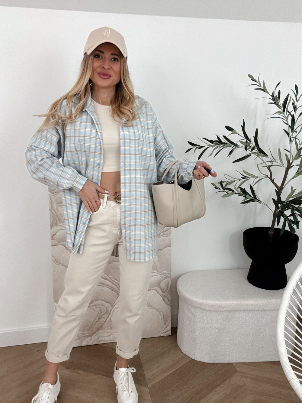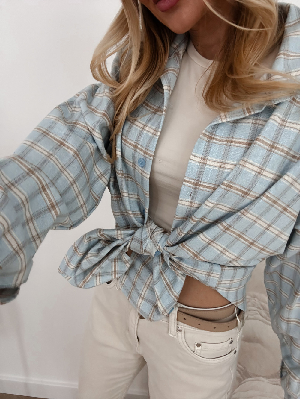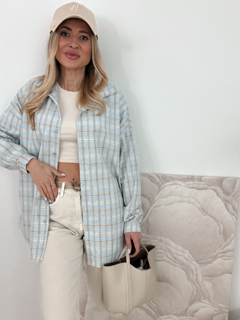 DELFINA - KOSZULA OVERSIZE W KRATKĘ BŁĘKIT