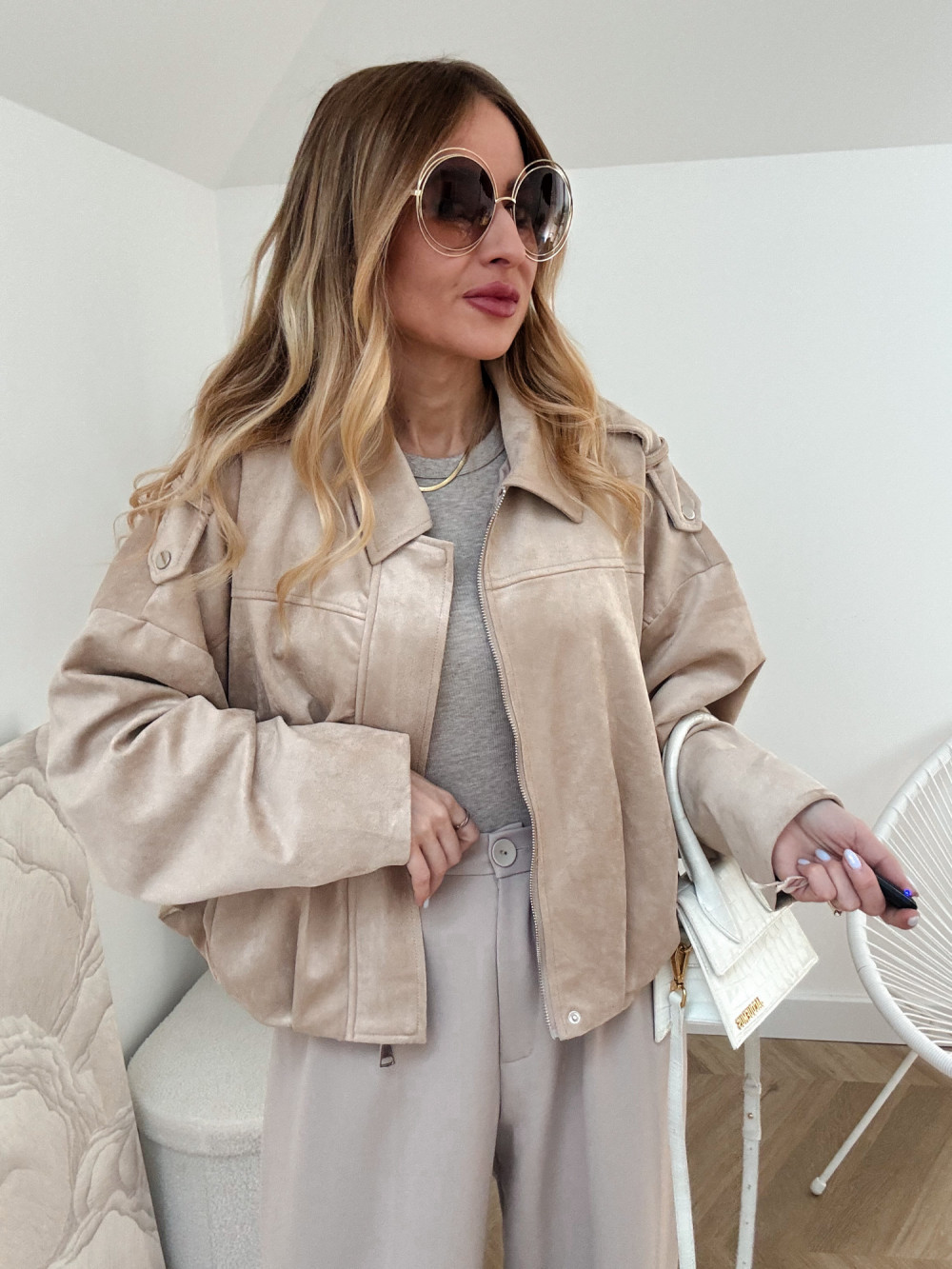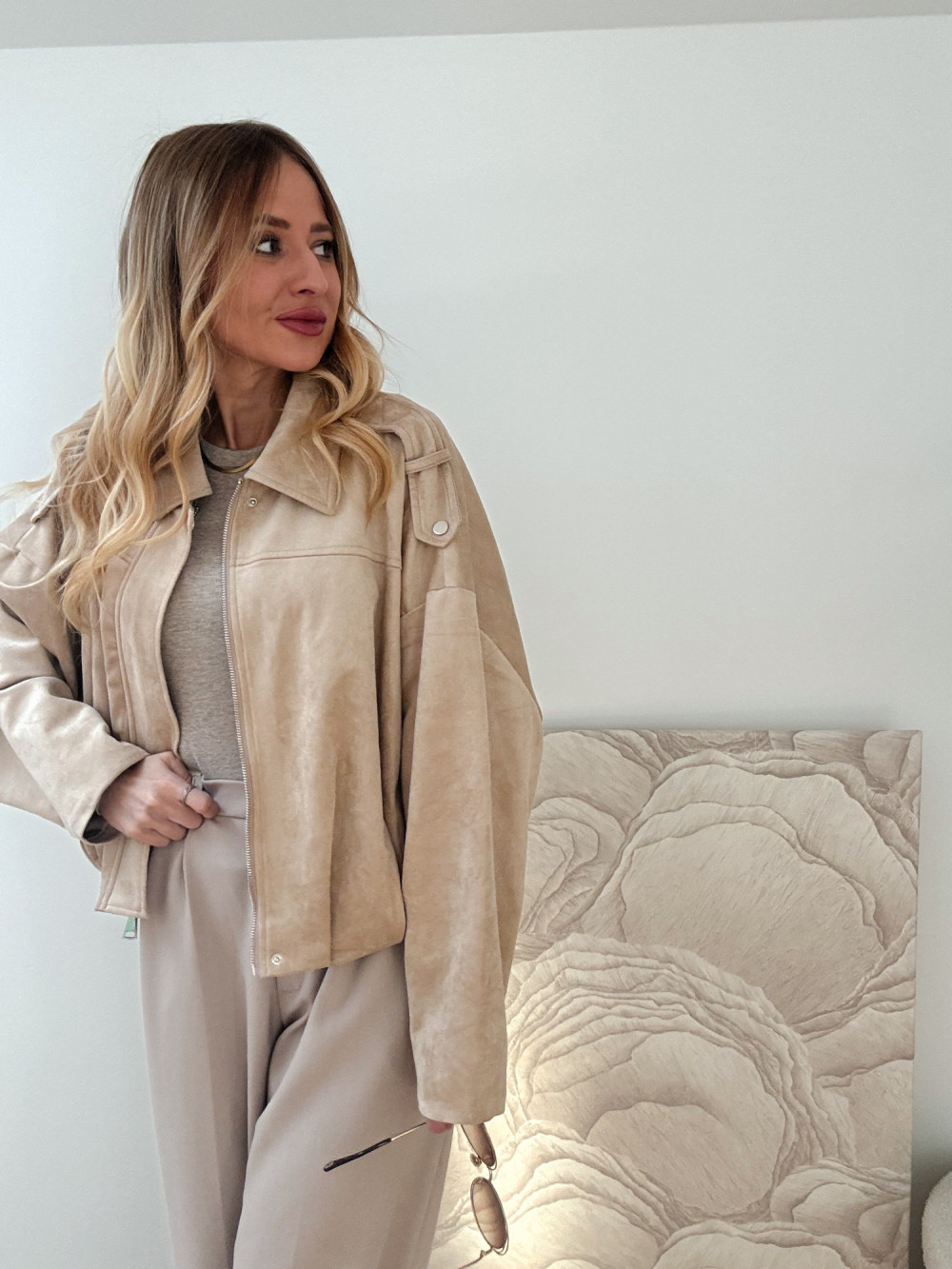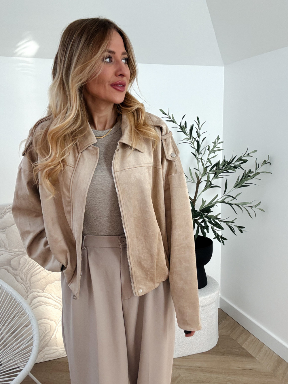ZARKA - KURTKA OVERSIZE ZAMSZOWA CIEPŁY BEŻ