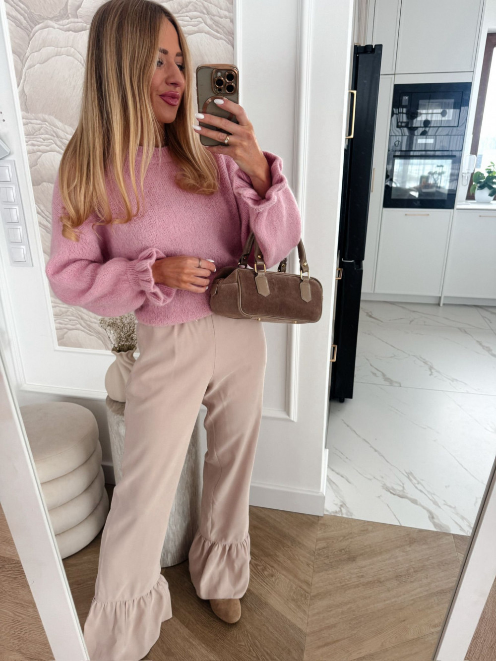 BENITA - SPODNIE Z FALBANKĄ BEŻOWE
