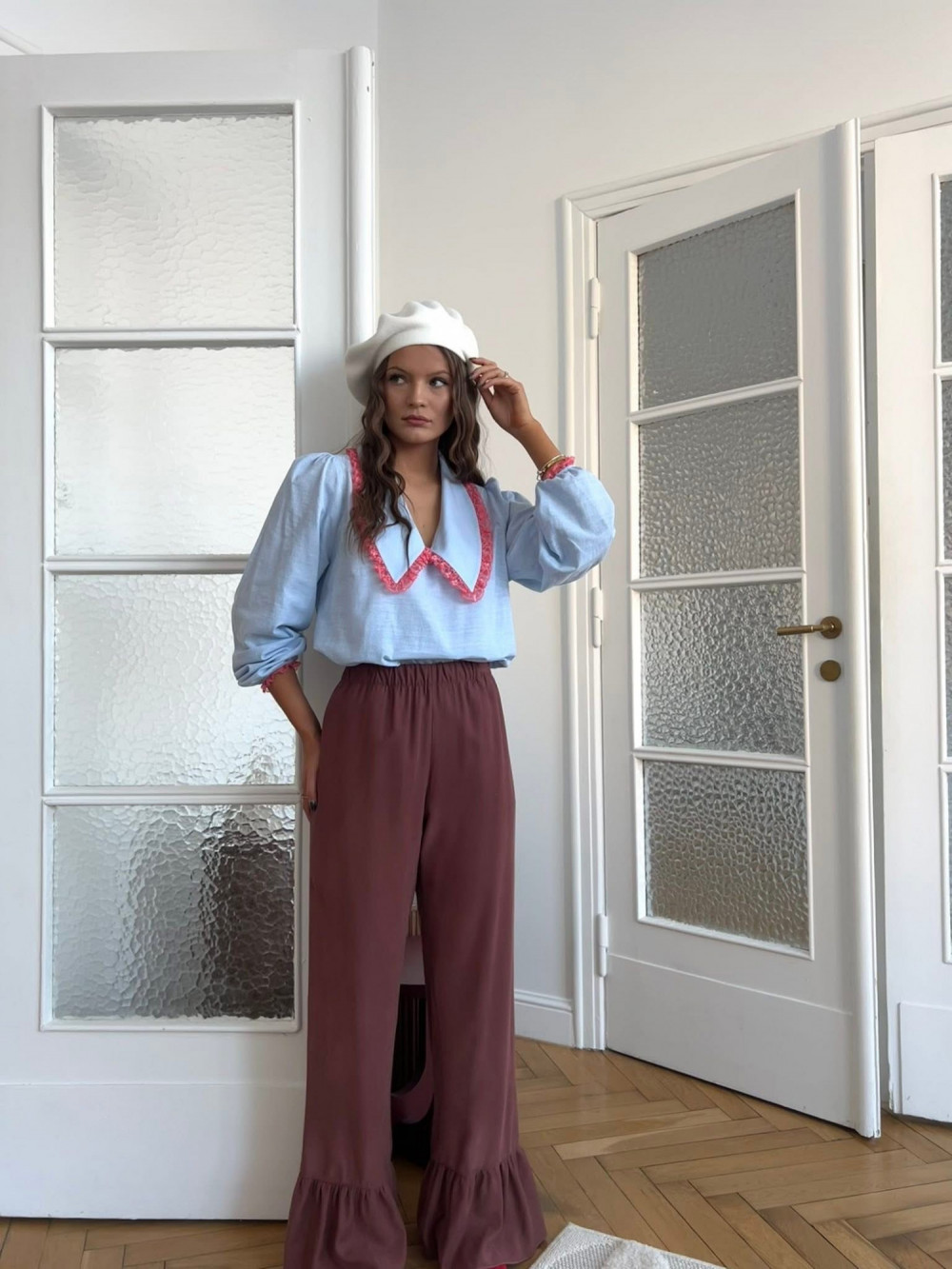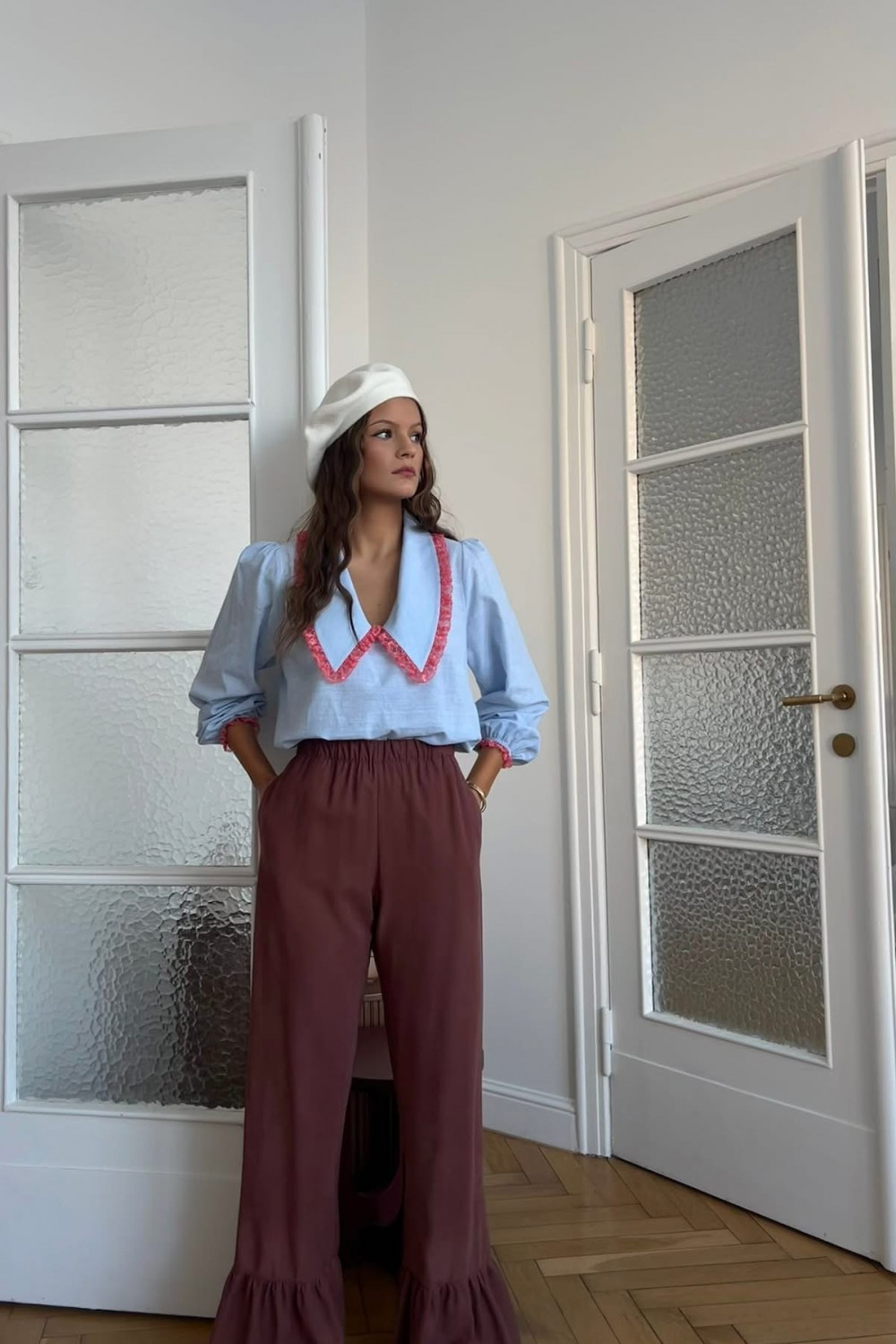 BENITA - SPODNIE Z FALBANKĄ MALINOWE