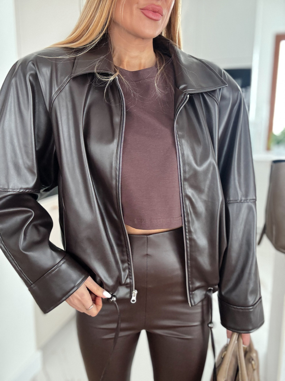 GUSTA - KURTKA SKÓRA CZEKOLADOWA