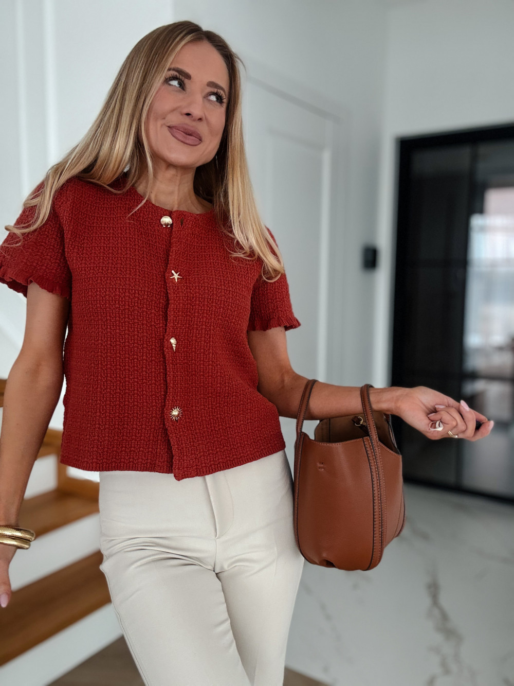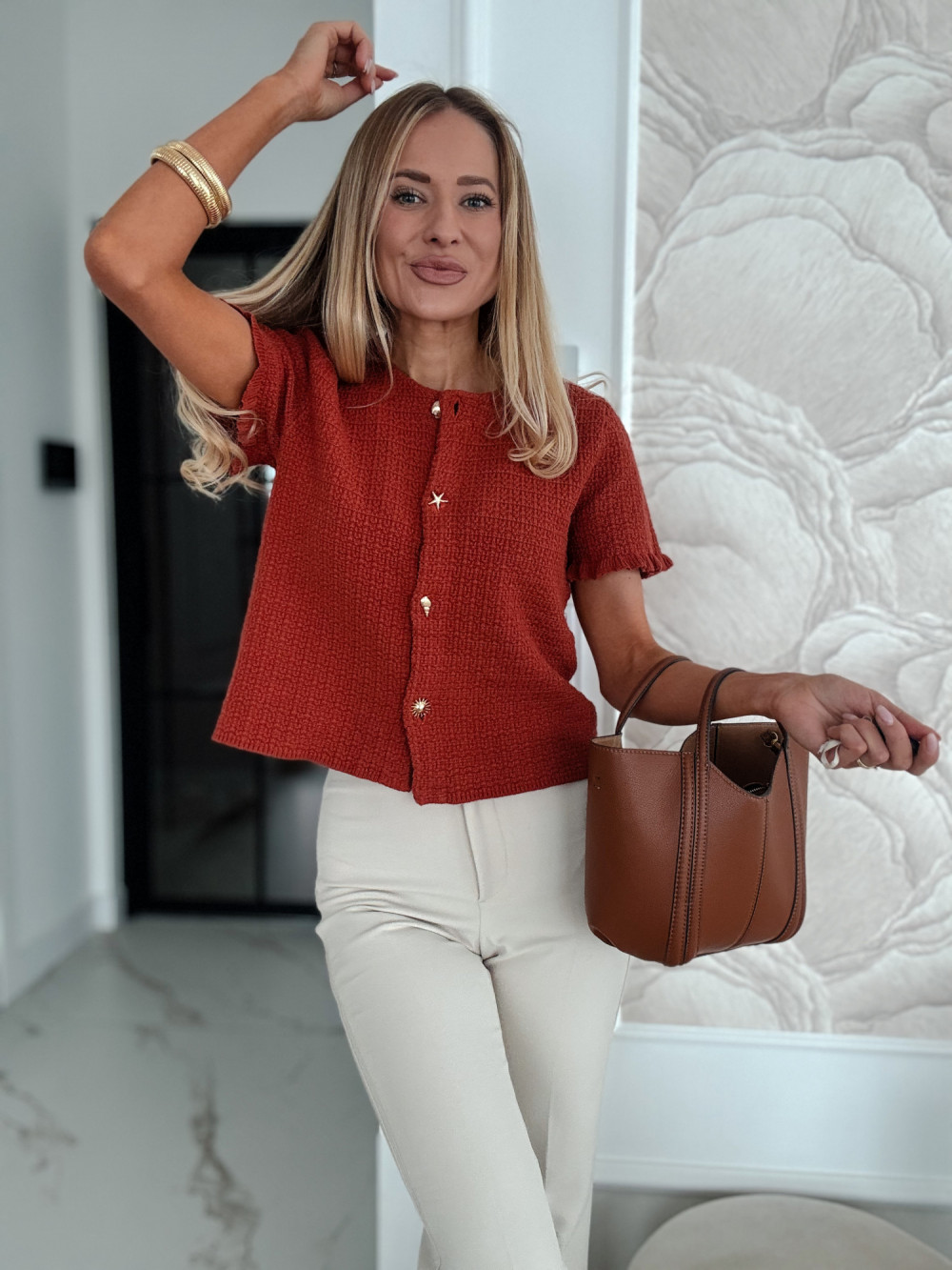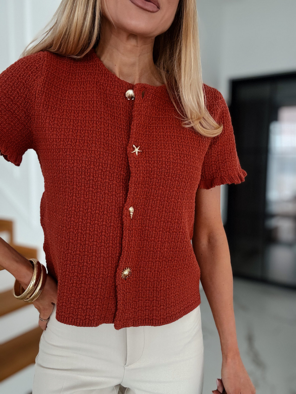 OCEANA - KARDIGAN NA KRÓTKI RĘKAW CEGLANY BAWEŁNA