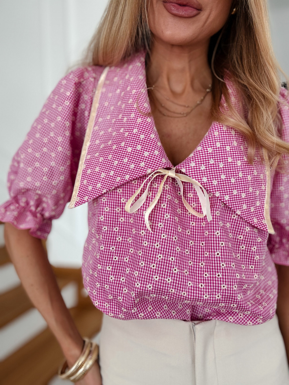 LIBRE- KOSZULA 100% BAWEŁNA RÓŻOWA W KWIATKI PREMIUM